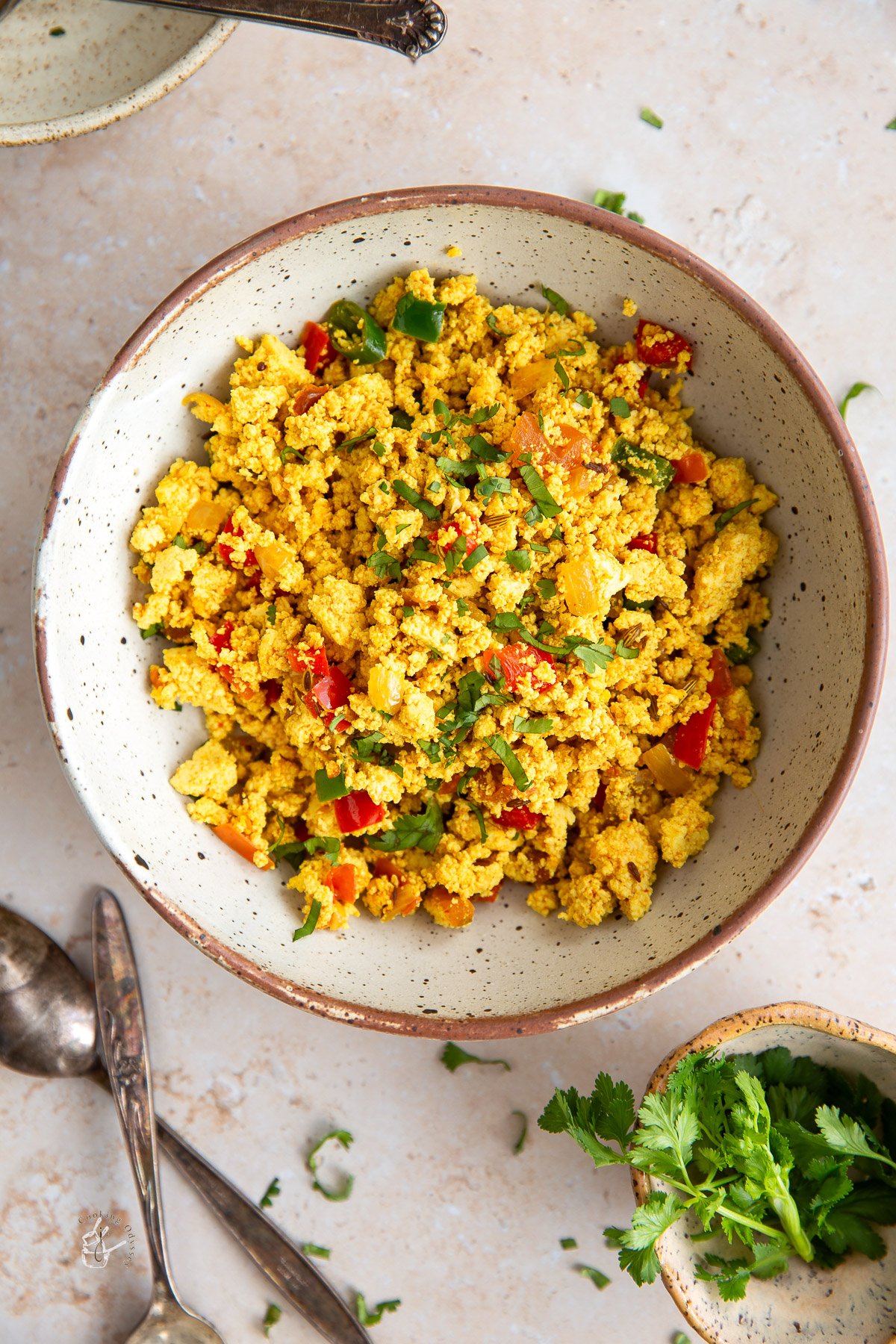 A light yet satisfying Tofu bhurji made with crumbled tofu, fresh vegetables, and warming spices. This plant-based, low calorie dish is perfect for a healthy meal any time of day.